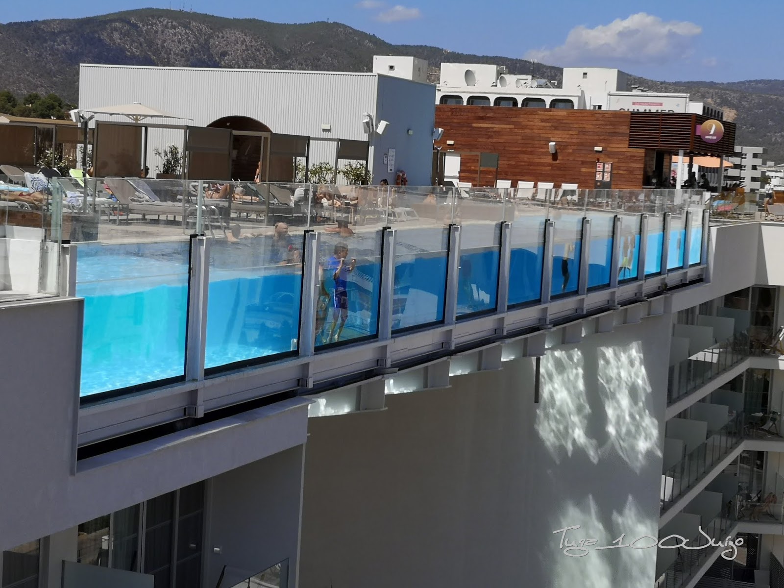 Um dos 3 hotéis do grupo tinha uma piscina de vidro no roof top, e como o grupo tem a política de "stay in one play in all" claro que fomos experimentar 😉